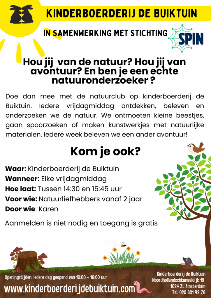 De Buiktuin Children’s Farm is open every day from 10:00 to 16:00.